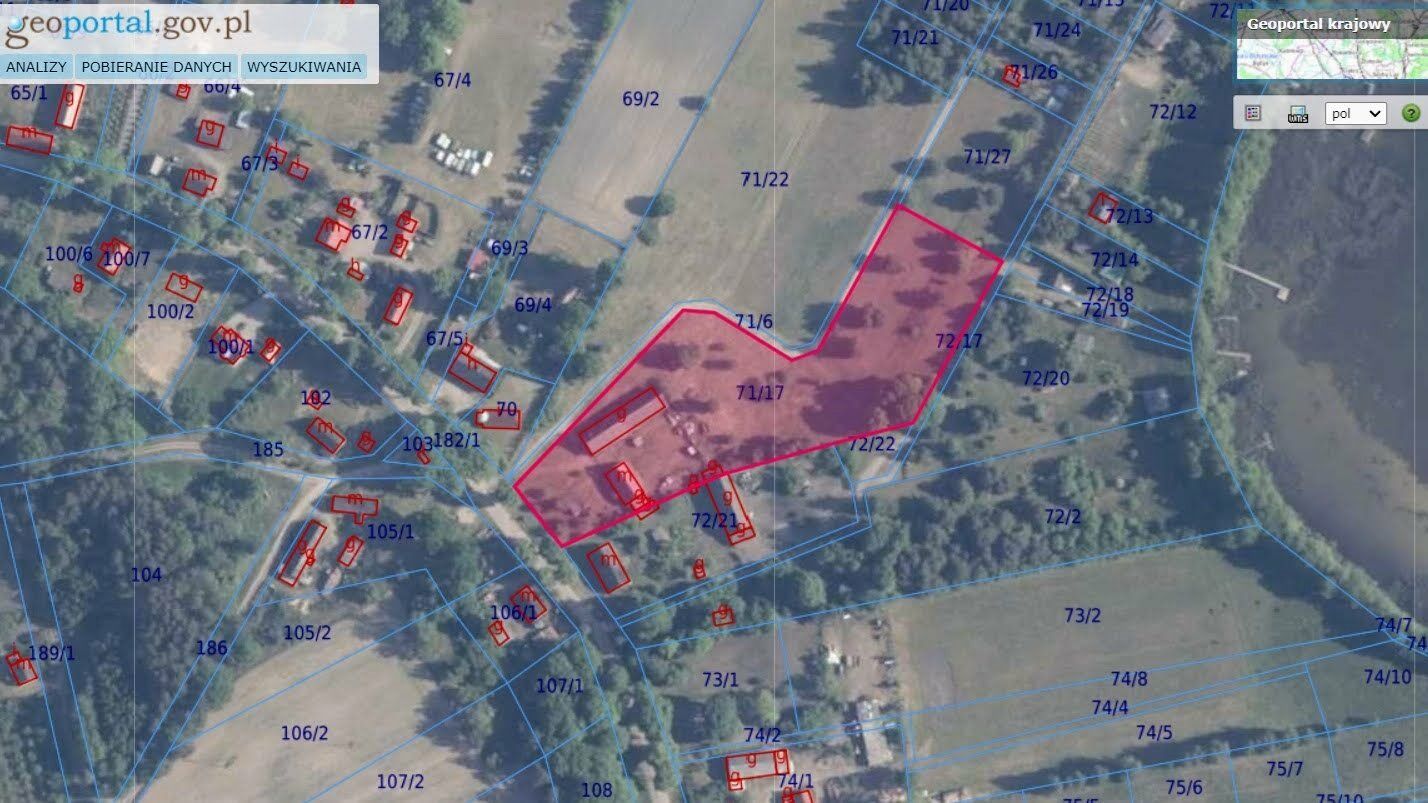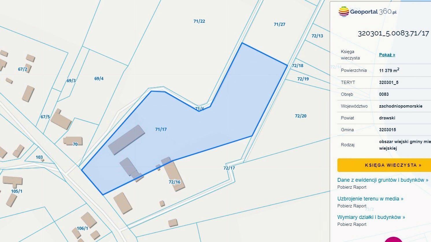 Działki o powierzchni 1,1380 ha zabudowana Domem o pow. 140 m2 składający sie z 4 pokoi, 2 kuchni oraz 2 łazienek. Rozkład pomieszczeń stanowiący 2 niezależne mieszkania z własną kuchnią i łazienką. Dom po remoncie w bardzo dobrym stanie technicznym. Dodatkowo budynek gospodarczy w którym wyodrębniona jest część garażowa. Dojazd do posesji bezpośrednio z głównej utwardzonej drogi lokalnej. Teren działki częściowo ogrodzony. Woda i kanalizacja z sieci miejskiej.